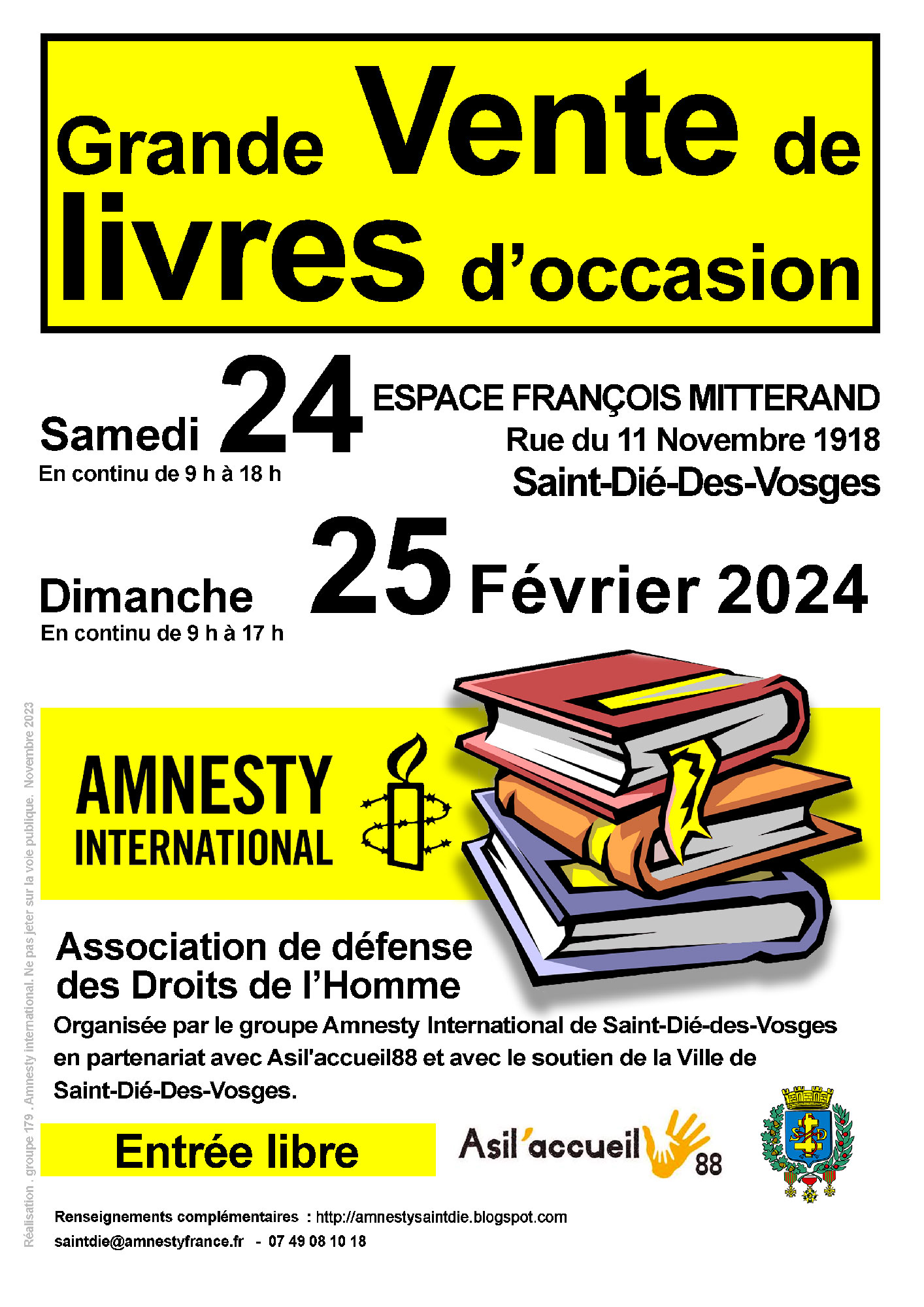 Environ 15000 ouvrages triés, rangés vous attendent ! Des tout petits prix pour tous … un grand geste pour les Droits Humains