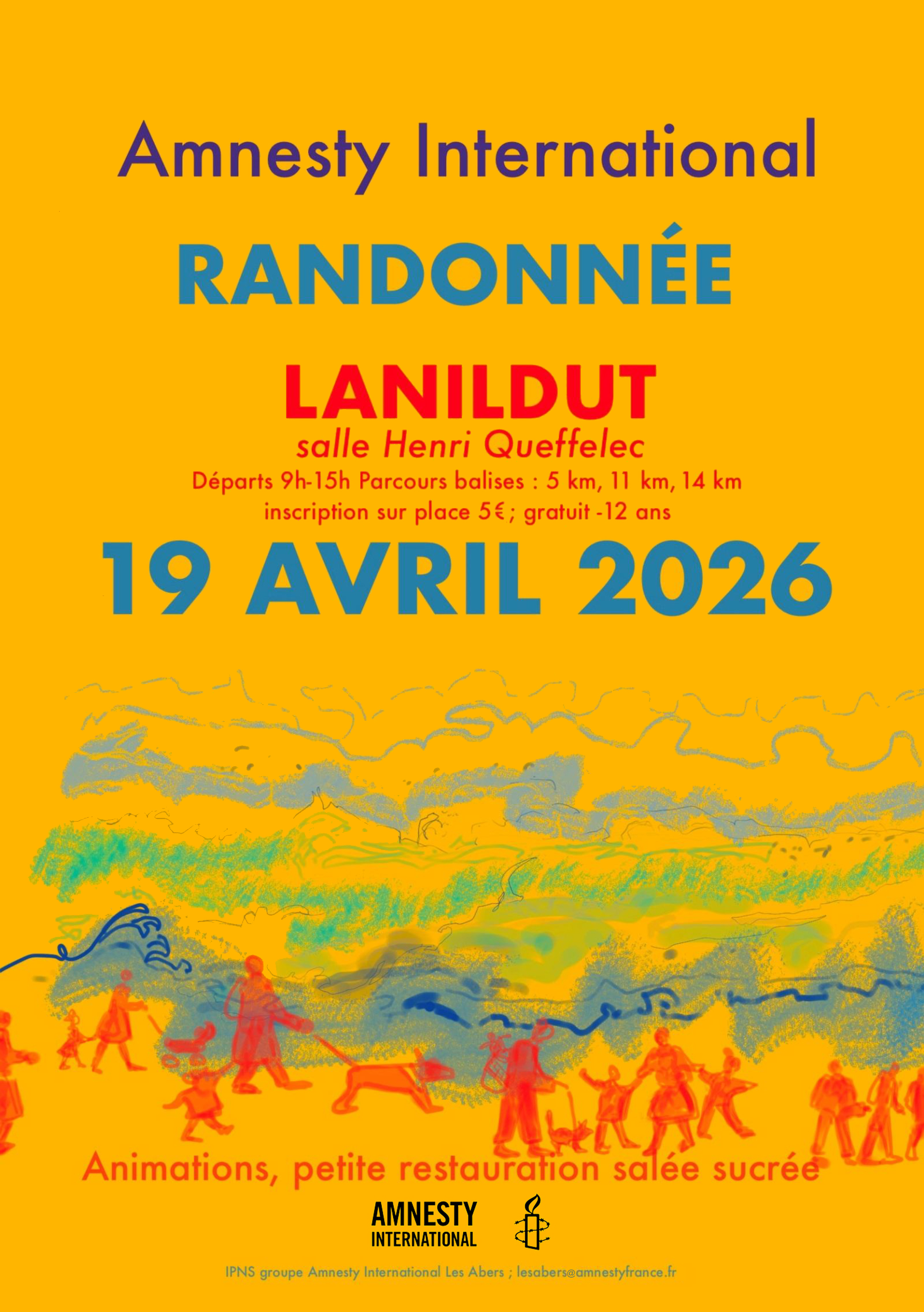 Le groupe Amnesty International des Abers organise sa randonnée annuelle de printemps le dimanche 19 avril 2026 sur les chemins de Lanidult