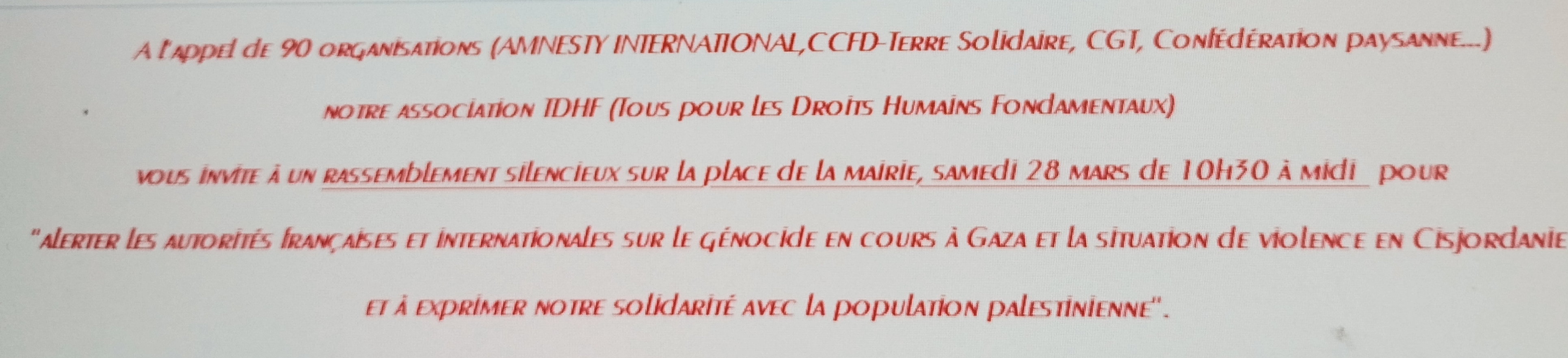 Rassemblement silencieux pour exiger le respect des Droits à Gaza et en Cisjordanie.