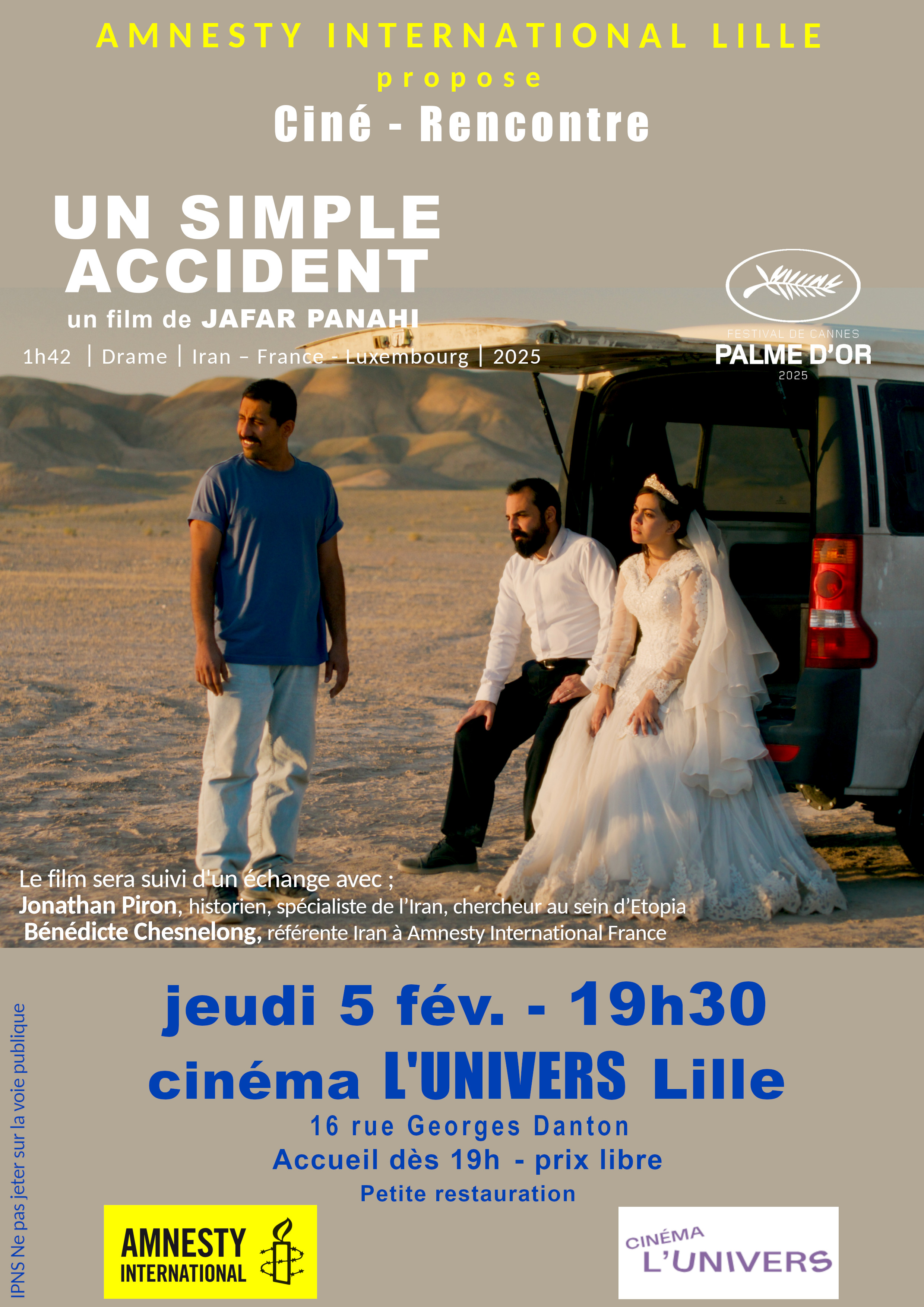 Ciné-rencontre autour de l’Iran, « Un simple accident », de Jafar Panahi, Palme d’or 2025 à Cannes.