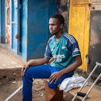 Tout le monde était en train de fuir. Moi je me suis retrouvé par terre, et c’est là que j’ai su que j’avais reçu une balle au niveau du pied (…) Il y a eu des retards dans la prise en charge ce qui a causé des infections et a conduit à l’amputation de ma jambe. Tous mes rêves sont brisés.