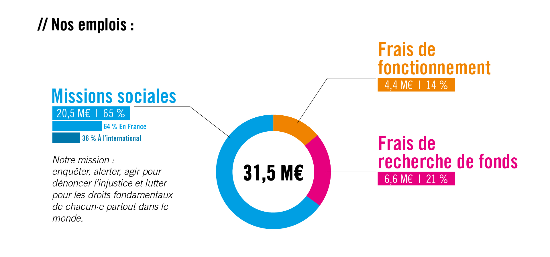 ? Être solidaire d’un mouvement mondial. Notre organisation est internationale et repose sur un principe de solidarité : les dons collectés permettent aussi de soutenir d’autres sections dans le monde qui ne peuvent pas s’autofinancer, afin de leur donner les moyens de défendre localement les droits humains.