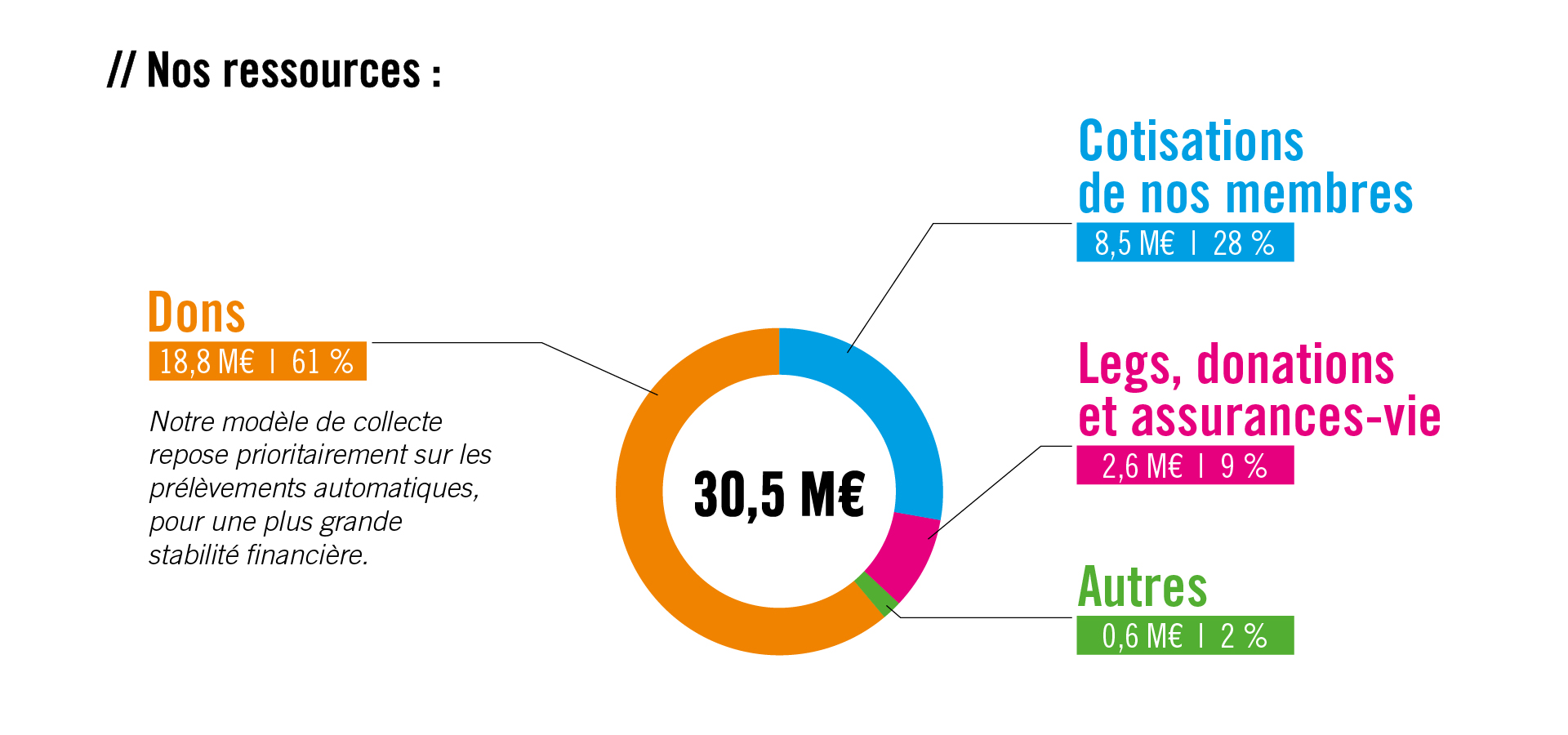 Nous finançons nos actions essentiellement grâce au soutien de nos membres et de nos donateurs.