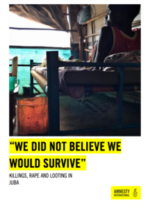 Rapport 24 octobre, 2016 « We did not believe we would survive »: Killings, rape and looting in Juba Rapport