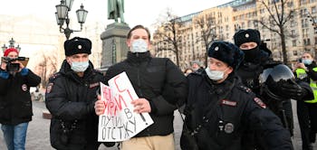 Un article du Code des infractions administratives - 20.3.3 – rend passible d’une amende toute personne ayant pour intention de « discréditer les forces armées ». L’amende peut aller jusqu'à 150 000 roubles (2 600 dollars, le salaire mensuel médian en Russie étant d'environ 600 dollars).