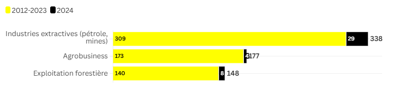 Les industries extractives ont un lien avec 338 meurtres de défenseur·es de l’environnement entre 2012 et 2024 :