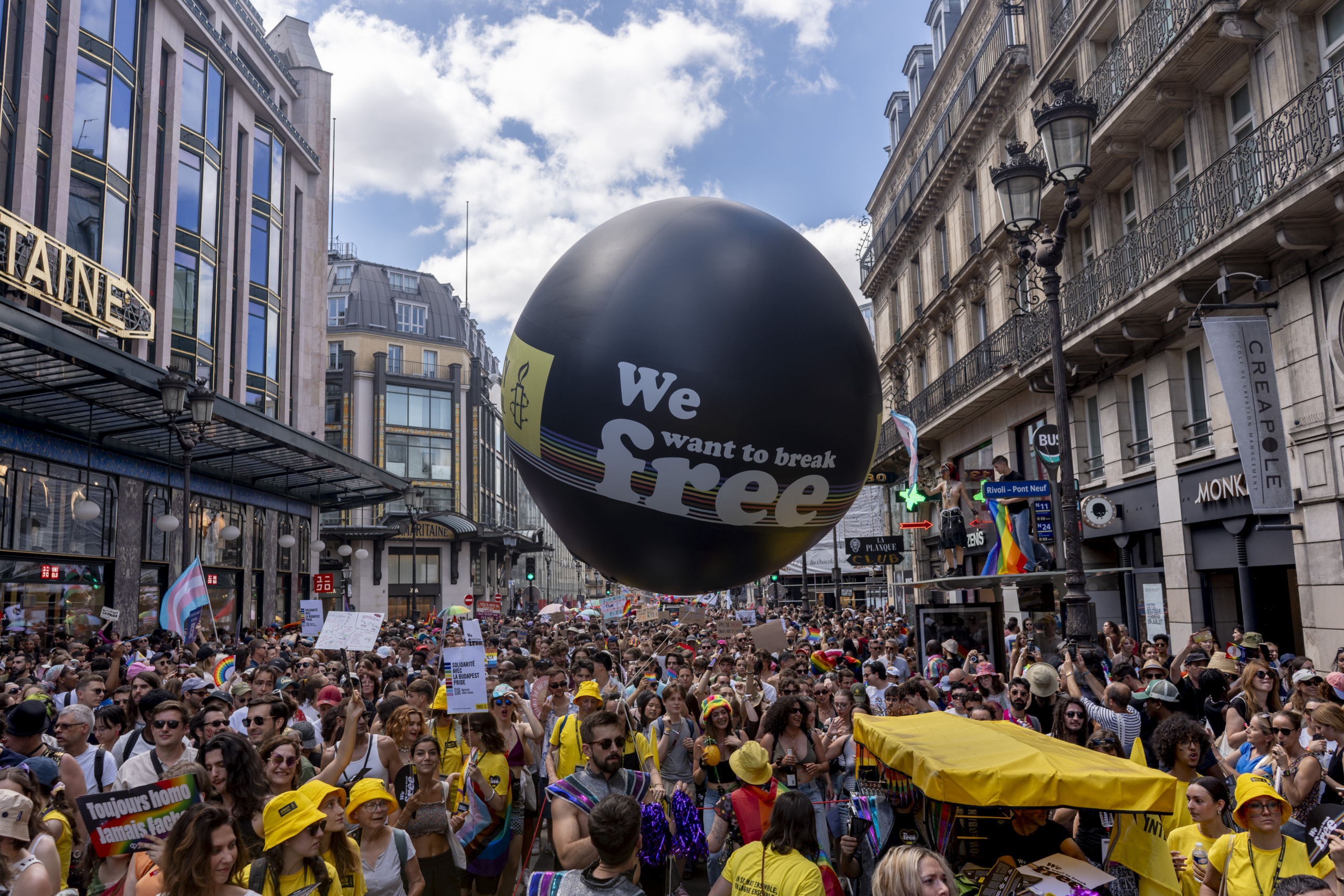 Cette année, nous marcherons à Paris le 28 juin, en solidarité avec la Hongrie où les droits et libertés des personnes LGBTI+ sont plus que jamais réprimés et où participer à ces marches est extrêmement dangereux.