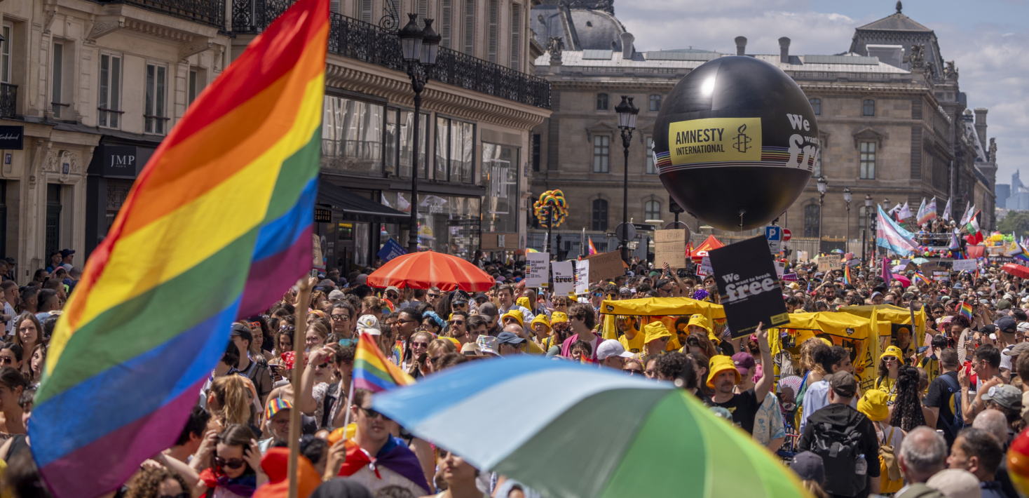 Chaque année, les militant·es d’Amnesty International France se mobilisent en participant à des marches dans toute la France. Ces grands rassemblements rappellent l’urgence de défendre l’égalité de tous et toutes sans distinction fondée sur l’orientation sexuelle, l’identité de genre, ou les caractéristiques sexuelles.