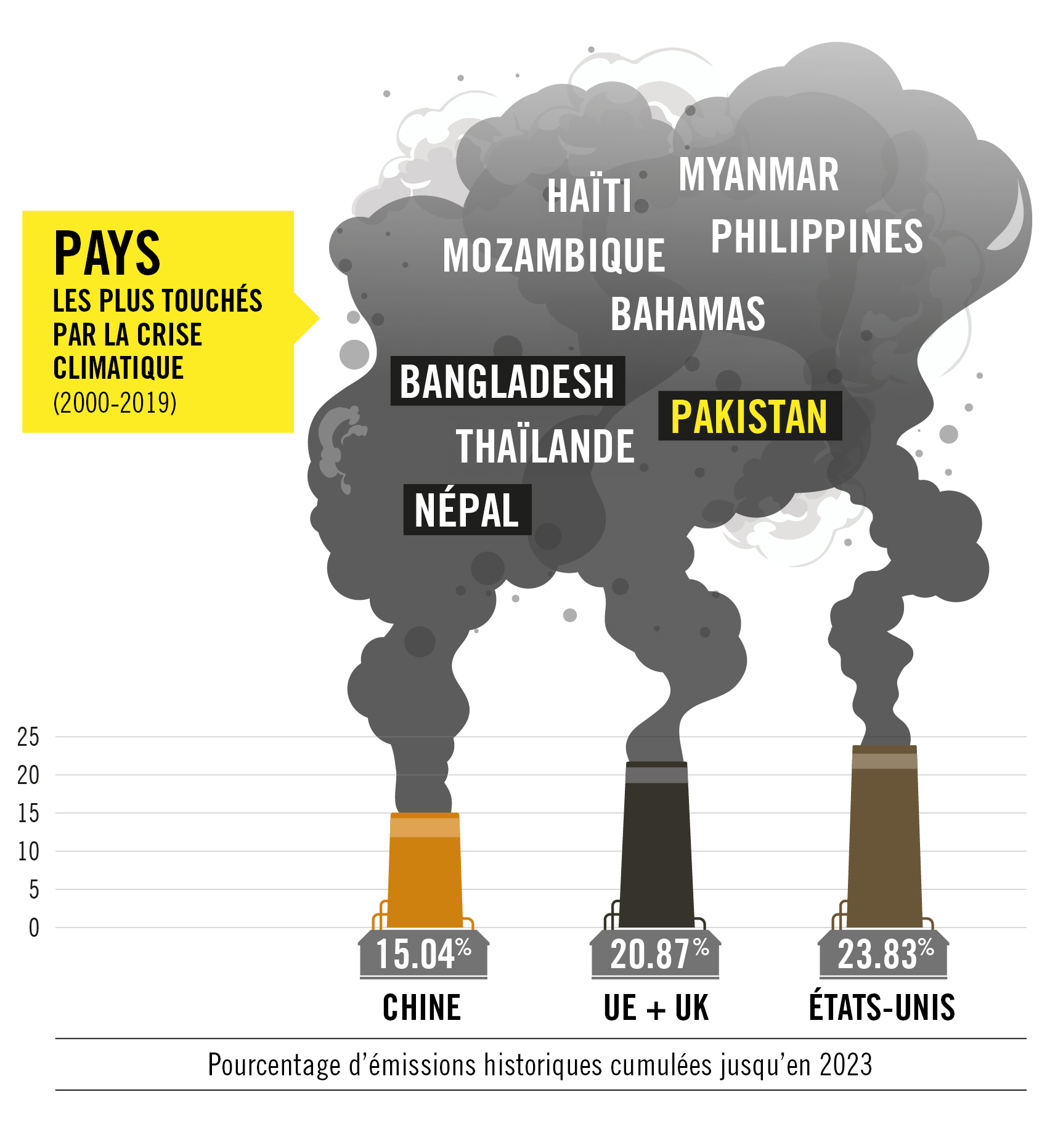 En effet, les pays les moins responsables des émissions de gaz à effet de serre sont les pays les plus touchés par les effets du changement climatique. C’est le cas du Pakistan qui fait partie des cinq pays les plus vulnérables alors qu’il contribue à moins de 1% des émissions mondiales de gaz à effet de serre.