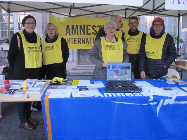 – Nous participons aux manifestations publiques locales pour faire entendre la voix d’Amnesty International et la défense des droits humains: fête de l’hiver, fête de l’été, rentrée des associations…