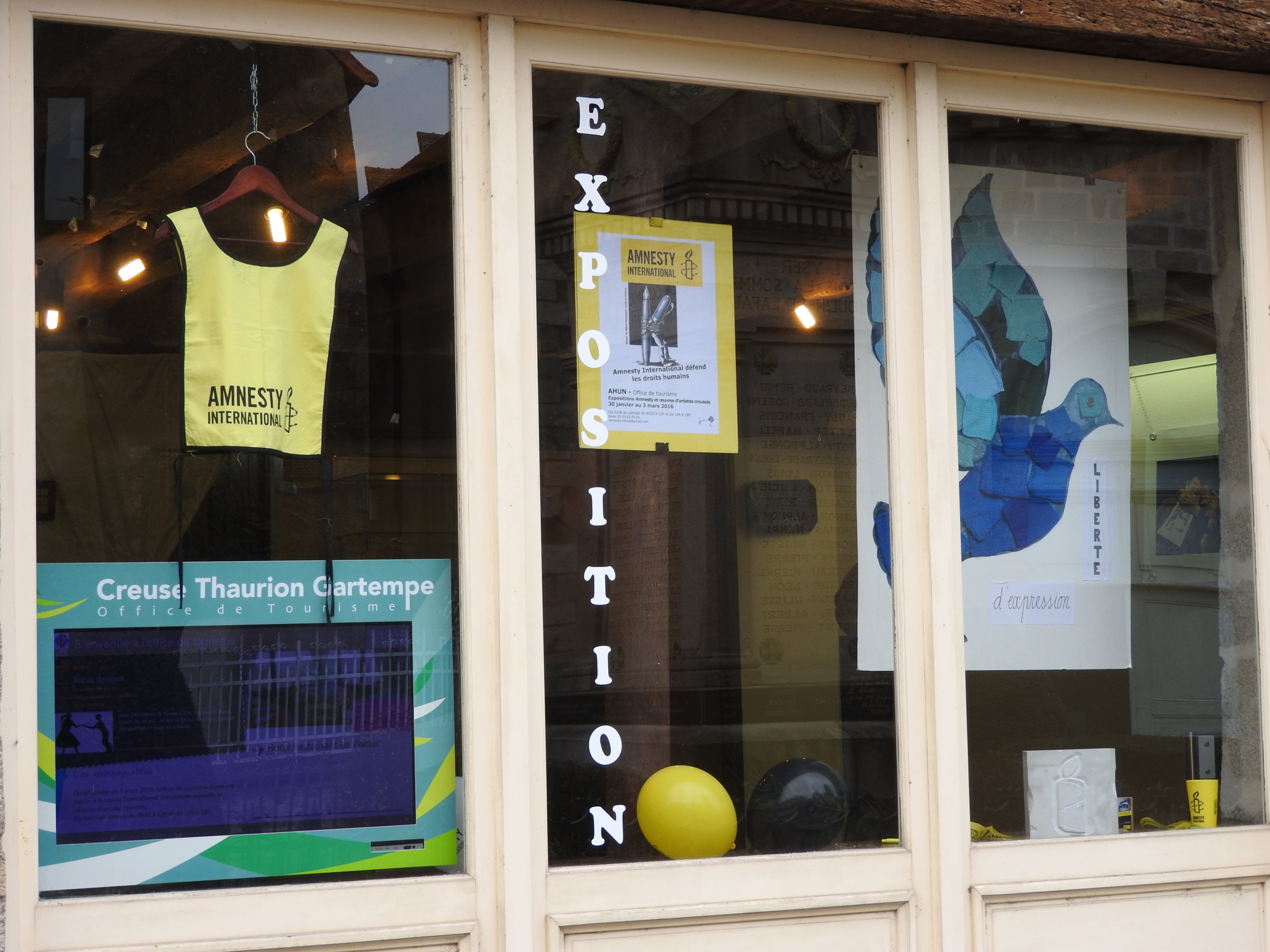 - Organisation d’une exposition pour laquelle des artistes creusois réalisent des œuvres sur un thème donné : la liberté d’expression, les droits de l’enfant…