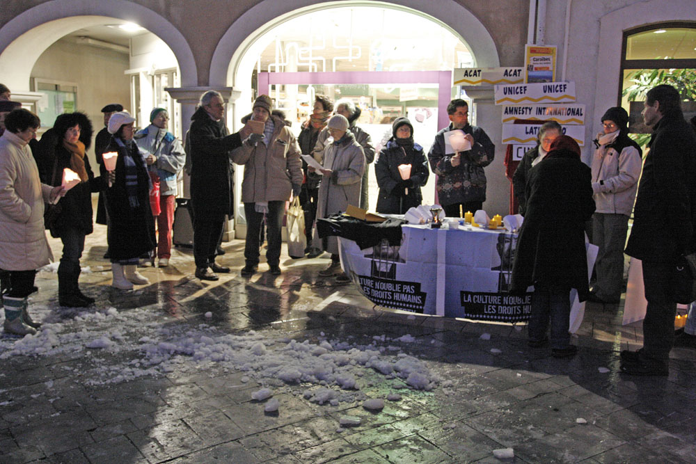 – Collaborer avec l’ACAT, l’UNICEF, le Secours Catholique et Peuples Solidaires à l’occasion de la Journée internationale des Nations Unies pour le soutien aux victimes de la torture, de FESTISOL ou de la Journée mondiale contre la peine de mort