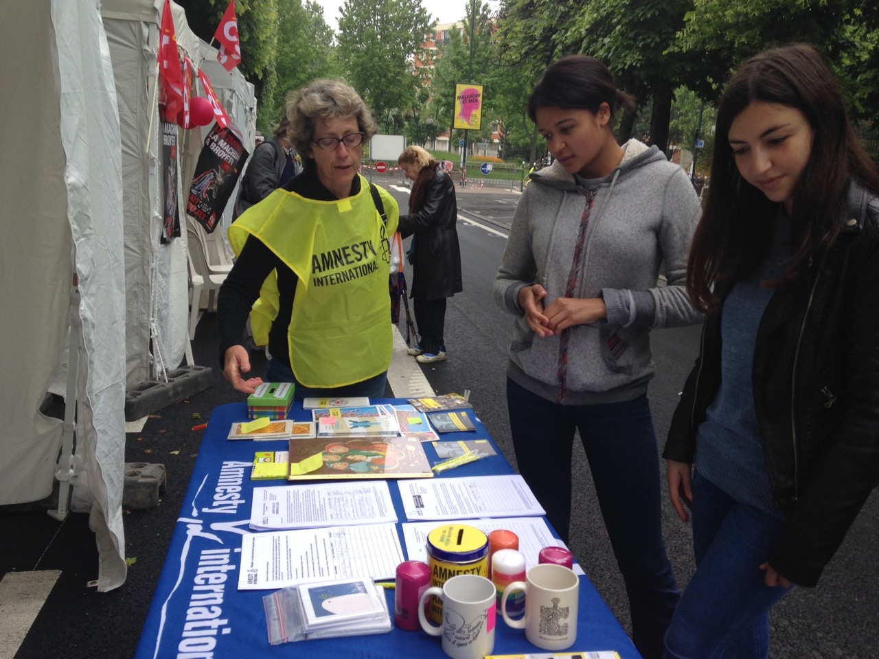 - Collecte de signatures et de messages de soutien aux personnes en danger dans les marchés, à l’université…