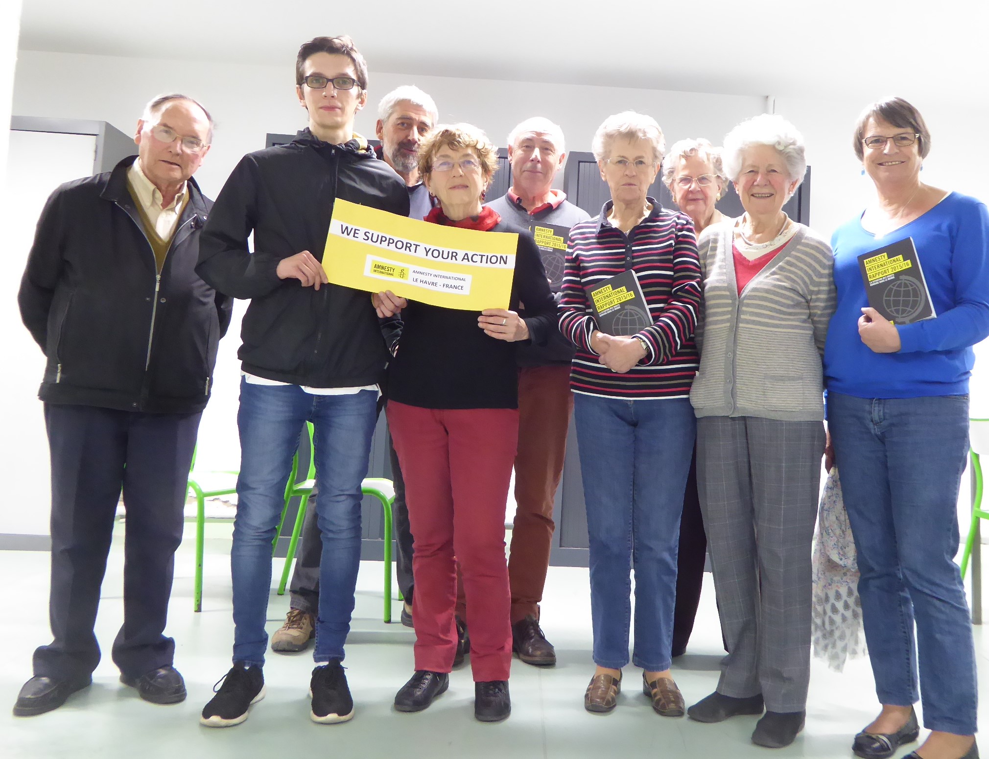 10 membres retraités sauf une exception. Le groupe se réunit une fois par mois pour organiser les actions qui permettent d’informer sur les droits humains et prendre connaissance de l’actualité des campagnes. Les responsables des sous-groupes: actions urgentes, peine de mort, Israël/Territoires occupés et suivi d’un dossier concernant un village de Palestine, communiquent leurs informations.