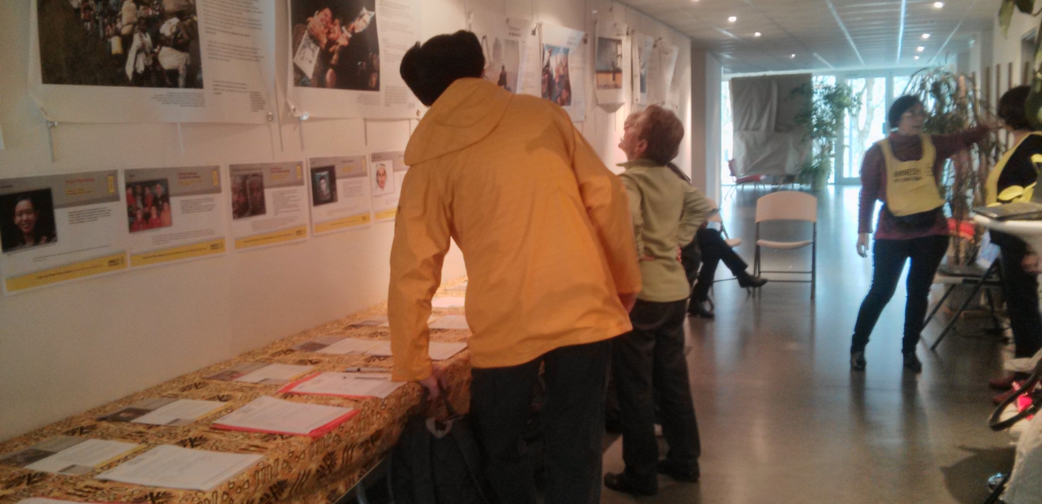 Notre groupe compte 6 membres actifs et travaille sur diverses thématiques. Notre objectif est de sensibiliser aux Droits Humains sur notre secteur les publics que nous rencontrons, seuls ou avec des associations partenaires : CCFD-Terre solidaire, LDH, Frères des Hommes…