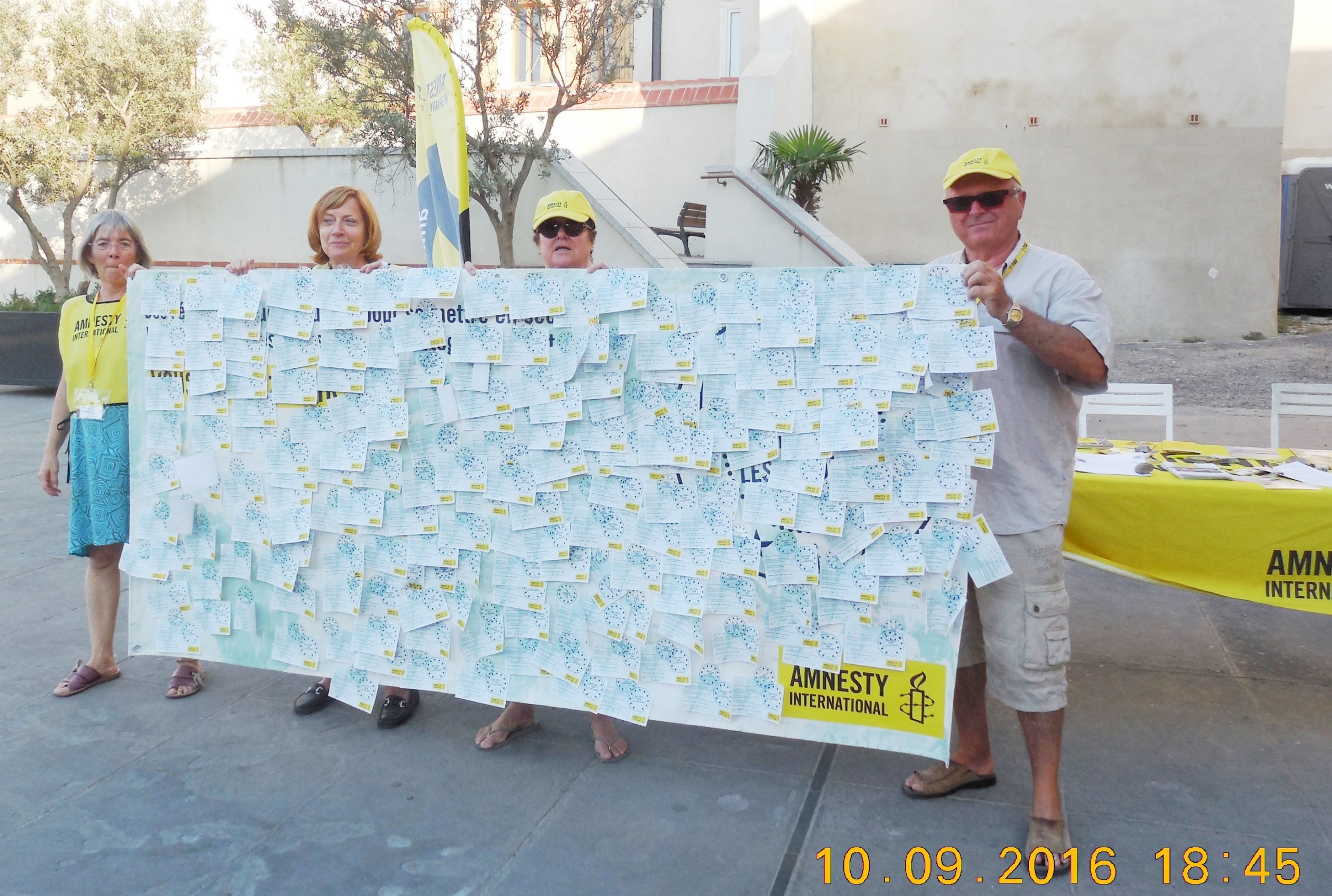 Le groupe compte une dizaine de membres habitant Perpignan et les environs, tous bénévoles. Notre rôle est de relayer localement auprès du public les actions d’Amnesty International en sensibilisant à la défense des droits humains par la tenue de stands, l’organisation de soirées-débat autour de films…