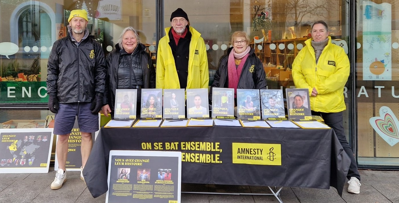- Stands d’information et collecte de signatures dans le cadre des campagnes nationales et internationales : Changez leur Histoire au marché de Nanterre, à Rueil-Malmaison, sur les forums …