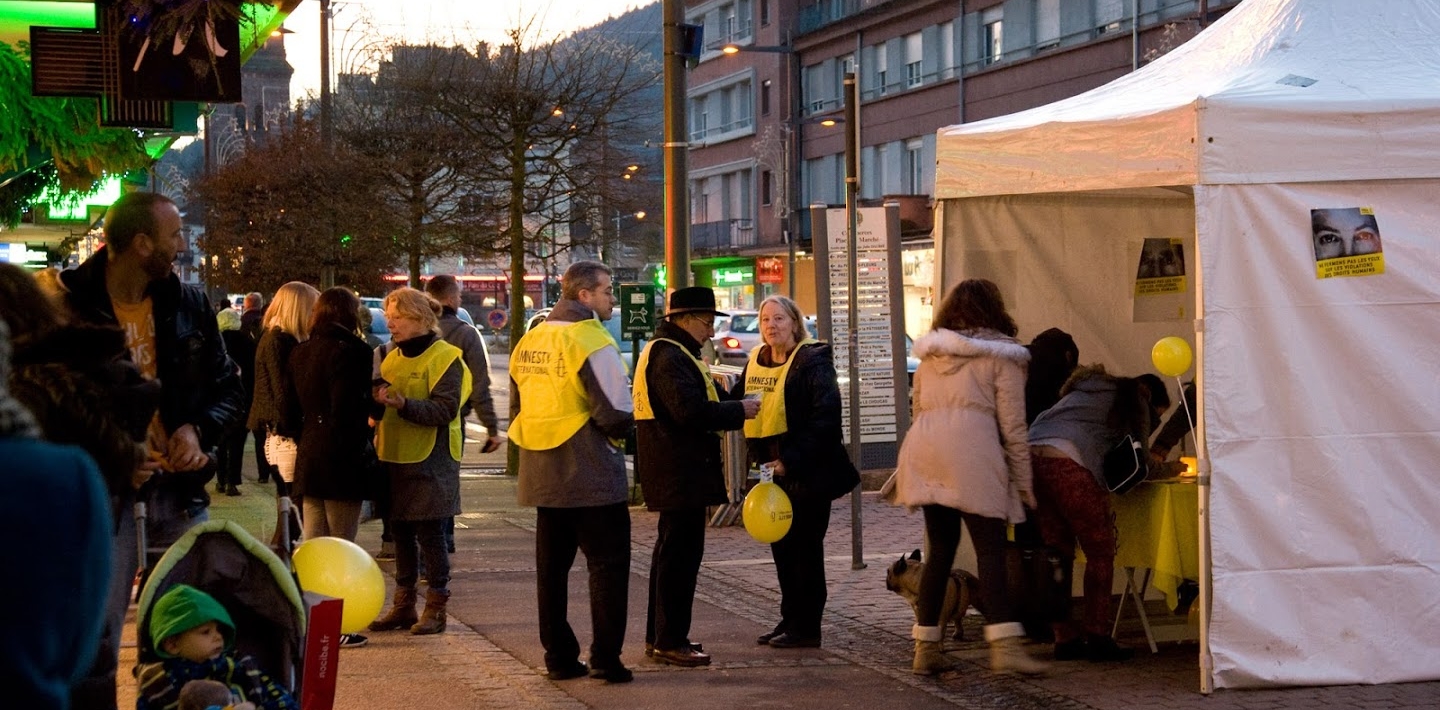 Notre groupe existe depuis plus de 35 ans. Nous sommes maintenant une dizaine de bénévoles, venant de Saint-Dié ou des villages proches, à défendre les droits humains en relayant localement les actions d’Amnesty International et en participant à la vie du mouvement.