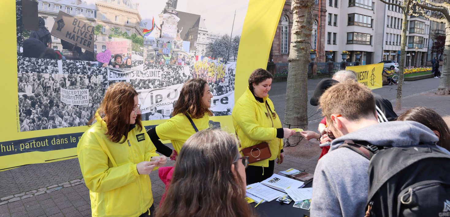 Créé en 1976, quatrième groupe et première implantation d’Amnesty International France en région, notre groupe comprend une vingtaine de membres qui habitent Strasbourg ou ses alentours proches. Nous venons d’horizons différents, certains sont de très anciens membres, d’autres de nouveaux adhérents, mais nous avons tous à cœur de faire progresser le respect des Droits Humains partout dans le monde.
