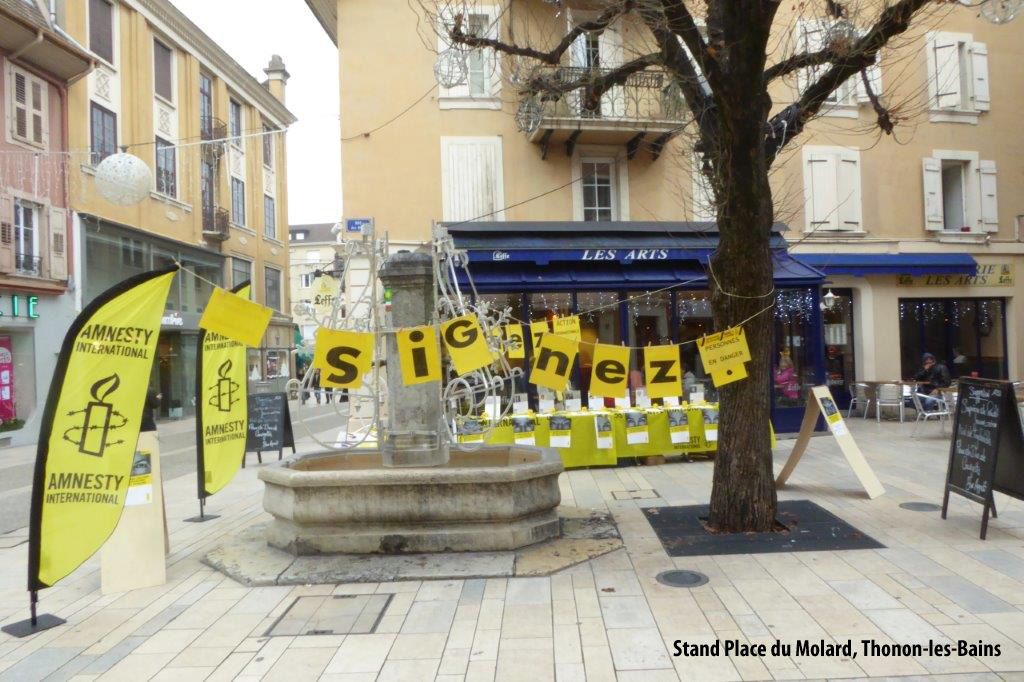 – Collecte de signatures et sensibilisation du public par des stands d’information dans les lieux publics
